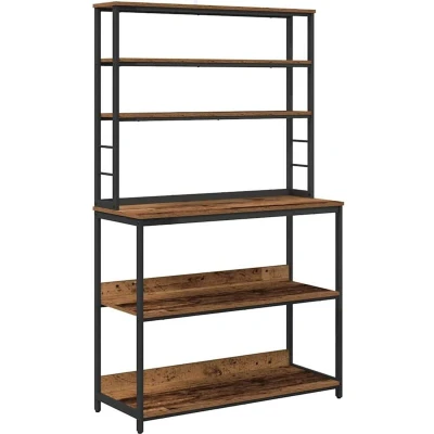 ManoManoThe Industrial Kitchen Shelf is a versatile freestanding storage solution designed to sharpen the distinct aesthetics of kitchens, pantries, or dining rooms. With its robust steel frame and engineered wood shelves, it embodies the raw charm of industrial styling while meeting the practical needs of modern homes. This rectangular shelving unit is perfect for those who appreciate the blend of form and function, offering ample space for everything from kitchen essentials to decorative items. The design elegantly suits urban lofts and industrial-inspired spaces. Materials: Featuring engineered wood shelves complemented by a sturdy steel frame, this shelf showcases resilience and industrial charm. The engineered wood is chosen for its abrasion resistance, ensuring longevity despite frequent use. The combination of these materials creates a piece both functional and visually appealing, adapting seamlessly to a variety of home settings. Included Components: The unit comprises multiple board