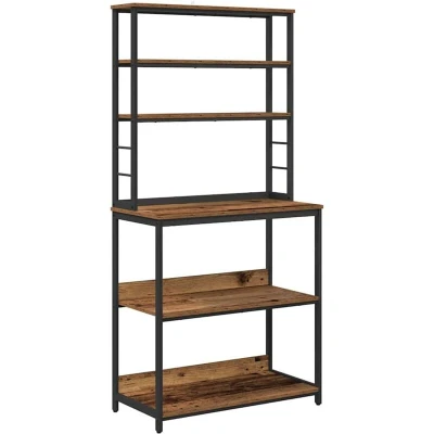 ManoManoThe Industrial Kitchen Shelf is a versatile freestanding storage solution designed to sharpen the distinct aesthetics of kitchens, pantries, or dining rooms. With its robust steel frame and engineered wood shelves, it embodies the raw charm of industrial styling while meeting the practical needs of modern homes. This rectangular shelving unit is perfect for those who appreciate the blend of form and function, offering ample space for everything from kitchen essentials to decorative items. The design elegantly suits urban lofts and industrial-inspired spaces. Materials: Featuring engineered wood shelves complemented by a sturdy steel frame, this shelf showcases resilience and industrial charm. The engineered wood is chosen for its abrasion resistance, ensuring longevity despite frequent use. The combination of these materials creates a piece both functional and visually appealing, adapting seamlessly to a variety of home settings. Included Components: The unit comprises multiple board