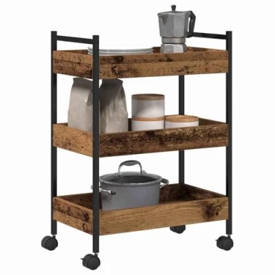 ManoManoGeneral description This Kitchen Trolley is the perfect blend of style and practicality, designed to fit right into modern kitchens. With its industrial look thanks to bold lines and an engineered wood finish, it adds a touch of sophistication while being super functional. Its compact size makes it easy to slot into your cooking area, adding elegance without taking over. It’s made for a busy cooking lifestyle, keeping all your essentials close and organized. Technical specifications Colour: Old wood Material: Engineered wood Overall dimensions: 50 x 30 x 70 cm (L x W x H) Weight: 8.2 kg Indoor / outdoor: Indoor only Assembly required: Yes EAN: 8721158972477 SKU: 869108 Brand: vidaXL Usage Versatile storage options with multiple shelves and compartments for organizing kitchenware. Designed to keep cooking gear, ingredients, and serving dishes easily accessible. Simple care with just a dry cloth needed for cleaning. Other information