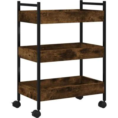 vidaXL Kitchen Trolley in Smoked Oak Engineered Wood Rolling Cart with Steel Frame for Storage, Lockable Wheels 50x30x70 cm
