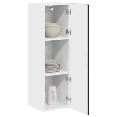 ManoManoGeneral description This Kitchen Wall Cabinet adds a modern touch to your kitchen space while offering ample storage solutions to keep your kitchen organized and tidy. Its clean lines and black frame bring a sense of minimalism and functionality, making it suitable for various kitchen decors. Perfect for storing tableware, cooking ingredients, or other kitchen essentials, this wall cabinet combines function with a sleek design, enhancing any culinary environment. Technical specifications Colour: Black Material: Engineered wood Overall dimensions: 30 x 31 x 100 cm (W x D x H) Weight: 13.6 kg Frame material: Engineered wood With 1 hinge door Indoor use only Included components: 3 shelves Installation Assembly required: Yes Mounting included: Wall/ceiling fixtures - specific screws or wall plugs not included For assembly, use a screwdriver following the manufacturer's instructions. Ensure screws suited for your wall type are used during installation for stability. Usage Ideal for the