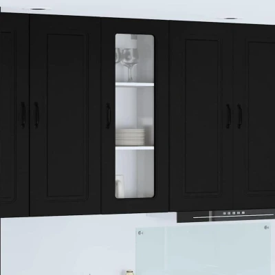 ManoManoGeneral description This Kitchen Wall Cabinet adds a modern touch to your kitchen space while offering ample storage solutions to keep your kitchen organized and tidy. Its clean lines and black finish bring a sense of minimalism and functionality, making it suitable for various kitchen decors. Perfect for storing tableware, cooking ingredients, or other kitchen essentials, this wall cabinet combines function with a sleek design, enhancing any culinary environment. Technical specifications Colour: Black Material: Engineered wood Overall dimensions: 40 x 31 x 100 cm (W x D x H) Weight: 16.32 kg Frame material: Engineered wood With 1 glass door Indoor use only Included components: 3 shelves Installation Assembly required: Yes Mounting included: Wall/ceiling fixtures (specific screws or wall plugs not included) For assembly, use a screwdriver following the manufacturer's instructions. Ensure screws suited for your wall type are used during installation for stability. Usage Ideal for the