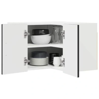 ManoManoGeneral description This Kitchen Wall Cabinet adds a modern touch to your kitchen space while offering ample storage solutions to keep your kitchen organized and tidy. Its clean lines and black frame bring a sense of minimalism and functionality, making it suitable for various kitchen decors. Perfect for storing tableware, cooking ingredients, or other kitchen essentials, this wall cabinet combines function with a sleek design, enhancing any culinary environment. Technical specifications Colour: Black Material: Engineered wood Overall dimensions: 57 x 57 x 40 cm (W x D x H) Weight: 15.27 kg Frame material: Engineered wood With 2 doors With 2 shelves Indoor use only Installation Assembly required: Yes Mounting included: Wall/ceiling fixtures - specific screws or wall plugs not included For assembly, use a screwdriver following the manufacturer's instructions. Ensure screws suited for your wall type are used during installation for stability. Usage Ideal for the kitchen, this cabinet