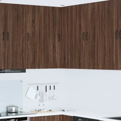 ManoManoGeneral description This Kitchen Wall Cabinet adds a modern touch to your kitchen space while offering ample storage solutions to keep your kitchen organized and tidy. Its clean lines and brown oak finish bring a sense of minimalism and functionality, making it suitable for various kitchen decors. Perfect for storing tableware, cooking ingredients, or other kitchen essentials, this wall cabinet combines function with a sleek design, enhancing any culinary environment. Technical specifications Colour: Brown oak Material: Engineered wood Overall dimensions: 57 x 57 x 100 cm (W x D x H) Weight: 27.77 kg Number of shelves: 3 Number of doors: 2 Indoor use only Included Components 1 x Kitchen wall cabinet Wall/ceiling fixtures (specific screws or wall plugs not included) Installation Assembly required: Yes Use a screwdriver following the manufacturer's instructions for assembly. Ensure screws suited for your wall type are used during installation for stability. Usage Ideal for storing