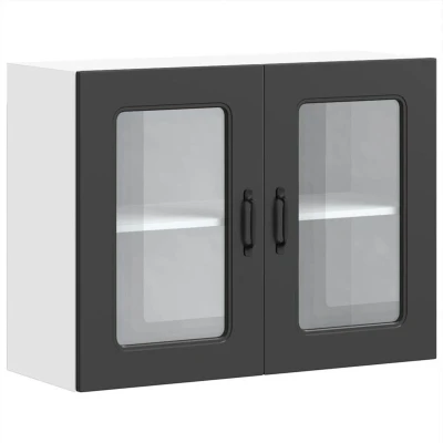 vidaXL Kitchen Wall Cabinet Engineered Wood/Glass, Black, 80x31x60 cm Modern Design with Glass Door, Ample Storage, Versatile for Kitchen/Bedroom/Living Room, Easy to Maintain