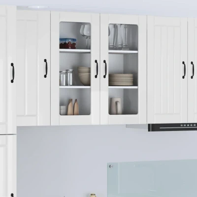 ManoManoGeneral description The Wooden Kitchen Wall Cabinet perfectly combines modern aesthetics with practicality in your kitchen space. Designed to elevate both functionality and style, it features a sophisticated silhouette characterized by clean lines and minimal ornamentation. This wall-mounted cabinet is ideal for organizing and storing various kitchen items, providing a convenient storage solution while enhancing the overall appearance of your culinary environment. Technical specifications Material: Engineered wood Colour: High gloss white Overall dimensions: 80 x 31 x 80 cm (L x W x H) Weight: 22.43 kg Number of shelves: 2 Frame material: Engineered wood Indoor use only Installation Assembly required: Yes Mounted configuration: Designed for wall-mounted setup, making excellent use of vertical space. Usage Care instructions: Wipe down with a damp cloth to remove dust and spills; no harsh chemicals needed. Ideal for organizing kitchen essentials such as dishes, spices, or cookware.