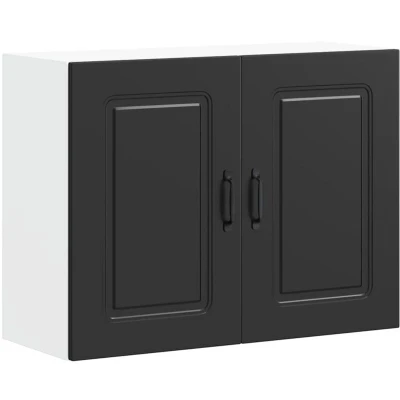ManoManoGeneral description This kitchen wall cabinet optimizes your kitchen space, providing ample storage for your personal belongings. It features practical doors that help maintain a clean and organized area by concealing kitchen appliances and clutter. Technical specifications Colour: Black Material: Engineered wood Overall dimensions: 80 x 31 x 60 cm (W x D x H) Dimensions of each shelf: 77 x 29.5 x 27.5 cm (W x D x H) Maximum load capacity (total): 60 kg Assembly required: Yes Range name: Kalmar Installation This product must be used with the wall attachment device provided to prevent overturning. Screw(s) and plug(s) for inside the wall are not included; seek and use suitable screw(s) and plug(s) for your walls. If uncertain, seek professional advice and read each step of the instruction carefully. Usage Easy to maintain: The smooth surface allows for easy cleaning with a damp cloth and requires less maintenance. Wide applications: This cabinet is versatile and suitable for use in