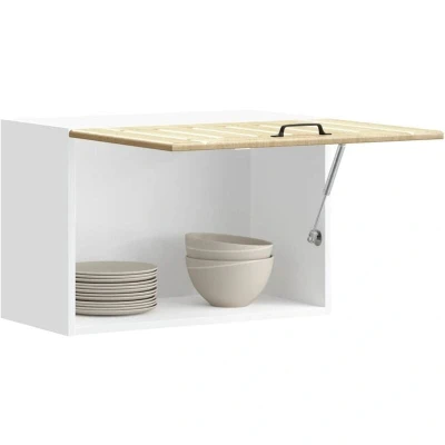 This kitchen wall cabinet is meant to optimise your kitchen space and decorate your home! Stable and durable material: Engineered wood is a durable and stable material with a smooth surface that is resistant to moisture, warping, and splitting, making it a reliable choice for a variety of projects.Ample storage space: The kitchen wall cabinet offers sufficient space to store bowls, plates, pots, and other kitchen appliances.Wall-mounted design: The kitchen cabinet can be wall-mounted to add extra storage space. That way, you can maximise your floor space and keep the area clean.Practical doors: The glass door helps maintain a clean and organised space by concealing kitchen appliances while allowing clear visibility.Easy to maintain: Thanks to its smooth surface, this mounted wall cabinet is easy to clean with a damp cloth and requires less maintenance. Good to know:Screw(s) and plug(s) for inside the wall are not included. Seek and use screw(s) and plug(s) suitable for your walls. If you are uncertain, seek professional advice. Read and follow each step of the instruction carefully.
