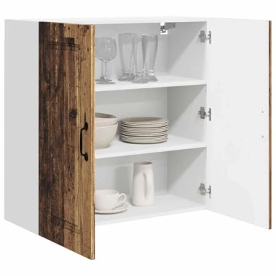 ManoManoGeneral description This Kitchen Wall Cabinet adds a modern touch to your kitchen space while offering ample storage solutions to keep your kitchen organized and tidy. Its clean lines and white frame bring a sense of minimalism and functionality, making it suitable for various kitchen decors. Perfect for storing tableware, cooking ingredients, or other kitchen essentials, this wall cabinet combines function with a sleek design, enhancing any culinary environment. Technical specifications Colour: Old wood Material: Engineered wood Overall dimensions: 80 x 31 x 80 cm (W x D x H) Weight: 22.86 kg Frame material: Engineered wood With 2 doors With 3 shelves Indoor use only Installation Assembly required: Yes Mounting included: Wall/ceiling fixtures - specific screws or wall plugs not included For assembly, use a screwdriver following the manufacturer's instructions. Ensure screws suited for your wall type are used during installation for stability. Usage Ideal for the kitchen, this cabinet