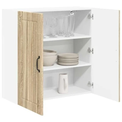 ManoManoGeneral description The Wooden Kitchen Wall Cabinet perfectly combines modern aesthetics with practicality in your kitchen space. Designed to elevate both functionality and style, it features a sophisticated silhouette characterized by clean lines and minimal ornamentation. This wall-mounted cabinet is ideal for organizing and storing various kitchen items, providing a convenient storage solution while enhancing the overall appearance of your culinary environment. Technical specifications Material: Engineered wood Colour: Sonoma oak Overall dimensions: 80 x 31 x 80 cm (L x W x H) Weight: 23.56 kg Number of shelves: 2 Frame material: Engineered wood Indoor use only Installation Assembly required: Yes Mounted configuration: Designed for wall-mounted setup, making excellent use of vertical space. Usage Care instructions: Wipe down with a damp cloth to remove dust and spills. No harsh chemicals needed. Ideal for organizing kitchen essentials such as dishes, spices, or cookware. Other