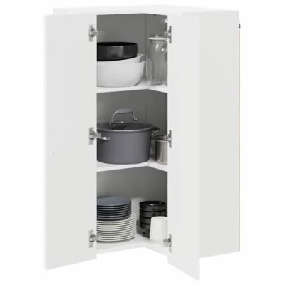 ManoManoGeneral description The Wooden Kitchen Wall Cabinet perfectly combines modern aesthetics with practicality in your kitchen space. Designed to elevate both functionality and style, it features a sophisticated silhouette characterized by clean lines and minimal ornamentation. This wall-mounted cabinet is ideal for organizing and storing various kitchen items, providing a convenient storage solution while enhancing the overall appearance of your culinary environment. Technical specifications Material: Engineered wood Overall dimensions: 57 x 57 x 100 cm (L x W x H) Weight: 27.71 kg Colour: White With 2 shelves Frame material: Engineered wood Indoor use only Assembly required: Yes EAN: 8721359460360 SKU: 885165 Brand: vidaXL Care Instructions Maintaining the cabinet is straightforward; simply wipe it down with a damp cloth to remove daily dust and spills. There's no need for harsh chemicals, which means keeping the cabinet clean is quick and hassle-free. Regular care keeps it looking