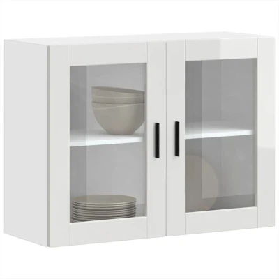 ManoManoGeneral description This kitchen wall cabinet is designed to optimize your kitchen space while adding a touch of elegance to your home. Its wall-mounted design helps maximize floor space and keep your area tidy, making it a practical addition to any kitchen. Technical specifications Colour: High gloss white Material: Engineered wood and glass Overall dimensions: 80 x 31 x 60 cm (W x D x H) Dimensions of each shelf: 77 x 29.5 x 27.5 cm (W x D x H) Maximum load capacity (total): 75 kg Range name: Porto Assembly required: Yes Installation Screws and plugs for wall mounting are not included; use suitable ones for your wall type. If uncertain, seek professional advice. Follow each step of the instruction manual carefully during installation. Usage The cabinet provides ample storage space for bowls, plates, pots, and other kitchen appliances. The glass door allows for visibility while keeping your items organized and concealed. Other information
