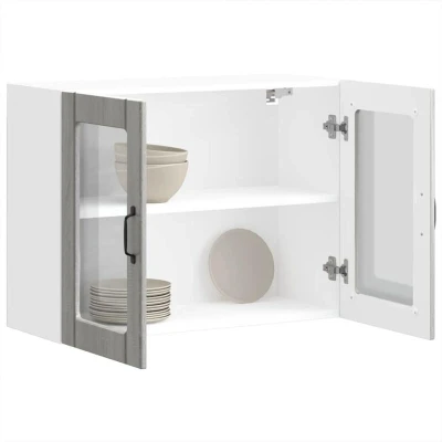 Vidaxl Kitchen Wall Cabinet with Glass Door Lucca Grey Sonoma Engineered Wood