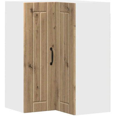 ManoManoGeneral description The Wooden Kitchen Wall Cabinet perfectly combines modern aesthetics with practicality in your kitchen space. Designed to elevate both functionality and style, it features a sophisticated silhouette characterized by clean lines and minimal ornamentation. This wall-mounted cabinet is ideal for organizing and storing various kitchen items, providing a convenient storage solution while enhancing the overall appearance of your culinary environment. Technical specifications Material: Engineered wood Colour: Artisan oak Overall dimensions: 57 x 57 x 80 cm (L x W x H) Weight: 25.63 kg Number of shelves: 2 Frame material: Engineered wood Indoor use only Assembly required: Yes EAN: 8721359459555 SKU: 885084 Care Instructions Maintaining the cabinet is straightforward; simply wipe it down with a damp cloth to remove daily dust and spills. There's no need for harsh chemicals, which means keeping the cabinet clean is quick and hassle-free. Regular care keeps it looking fresh