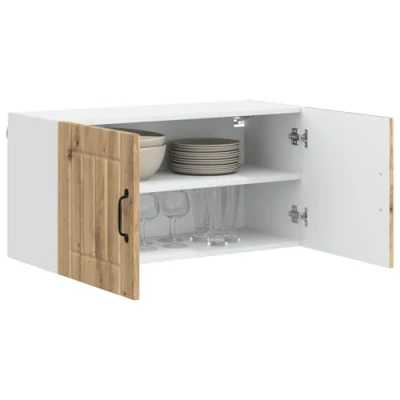 ManoManoGeneral description The Wooden Kitchen Wall Cabinet perfectly combines modern aesthetics with practicality in your kitchen space. Designed to elevate both functionality and style, it features a sophisticated silhouette characterized by clean lines and minimal ornamentation. This wall-mounted cabinet is ideal for organizing and storing various kitchen items, providing a convenient storage solution while enhancing the overall appearance of your culinary environment. Technical specifications Material: Engineered wood Colour: Artisan oak Overall dimensions: 80 x 31 x 40 cm (L x W x H) Weight: 14.12 kg Number of shelves: 2 Frame material: Engineered wood Indoor use only Installation Assembly required: Yes Mounted configuration: Designed for wall-mounted setup, making excellent use of vertical space. Usage Care instructions: Wipe down with a damp cloth to remove dust and spills; no harsh chemicals needed. Ideal for organizing kitchen essentials such as dishes, spices, or cookware. Other