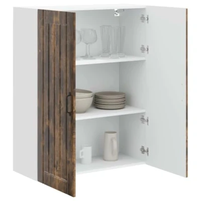 ManoManoGeneral description The Wooden Kitchen Wall Cabinet perfectly combines modern aesthetics with practicality in your kitchen space. Designed to elevate both functionality and style, it features a sophisticated silhouette characterized by clean lines and minimal ornamentation. This wall-mounted cabinet is ideal for organizing and storing various kitchen items, providing a convenient storage solution while enhancing the overall appearance of your culinary environment. Technical specifications Material: Engineered wood Colour: Smoked oak Overall dimensions: 80 x 31 x 100 cm (L x W x H) Weight: 26.77 kg Number of shelves: 2 Frame material: Engineered wood Indoor use only Installation Assembly required: Yes Mounted configuration: Designed for wall-mounted setup, making excellent use of vertical space. Usage Care instructions: Wipe down with a damp cloth to remove dust and spills; no harsh chemicals needed. Ideal for organizing kitchen essentials such as dishes, spices, or cookware. Other
