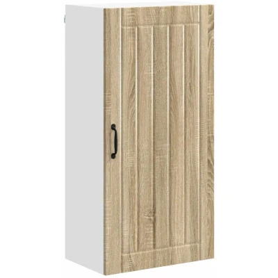 ManoManoGeneral description The Wooden Kitchen Wall Cabinet is a perfect blend of modern aesthetics and practicality, designed to enhance both functionality and style in your kitchen. This wall-mounted cabinet is ideal for organizing and storing various kitchen items, providing a convenient storage solution while elevating the overall appearance of your culinary space. Technical specifications Material: Engineered wood Colour: Sonoma oak Overall dimensions: 50 x 31 x 100 cm (L x W x H) Weight: 19.28 kg Number of shelves: 2 Frame material: Engineered wood Indoor use only Installation Assembly required: Yes Designed for wall-mounted configuration, making excellent use of vertical space. Usage Ideal for organizing kitchen essentials such as dishes, spices, or cookware. Easy to maintain; simply wipe down with a damp cloth to remove dust and spills. Other information