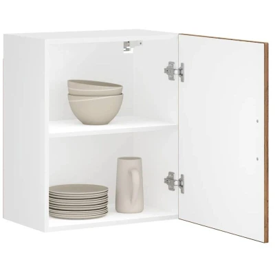 ManoManoGeneral description These kitchen wall cabinets optimize your kitchen space, providing ample storage for your personal belongings. The wall-mounted design allows you to maximize floor space while keeping the area clean and organized. Technical specifications Colour: Old wood Material: Engineered wood Overall dimensions: 50 x 31 x 60 cm (W x D x H) Dimensions of each compartment: 47 x 29.5 x 27.5 cm (W x D x H) Maximum weight capacity: 60 kg Weight capacity per layer: 25 kg Assembly required: Yes Delivery contains: 2 x Kitchen wall cabinet SKU: 854054 Installation To prevent tipping, use the provided wall attachment device. Screws and plugs for wall mounting are not included; use suitable ones for your walls. Follow each step of the instruction carefully for proper installation. Usage The practical door helps maintain a clean and organized space by concealing kitchen appliances and clutter. The smooth surface of the cabinet makes it easy to clean with a damp cloth, requiring less