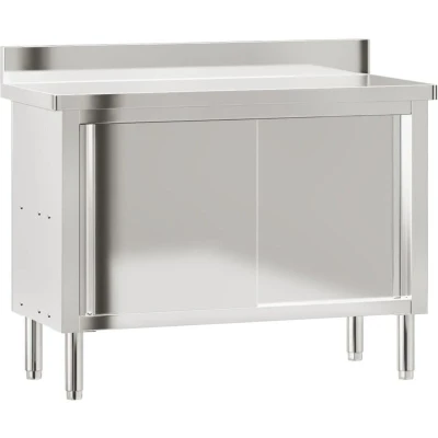 VidaXLThis versatile kitchen work table is perfect for food preparation and storage, making it an ideal addition to any kitchen, restaurant, school, or other commercial setting. Durable and stable construction: The work table is made of stainless steel, providing resistance to corrosion and rust for years of reliable use. The smooth surface is easy to clean and maintain, ensuring a hygienic food preparation area.Ample storage space: This table features a convenient bottom shelf, allowing you to keep cleaning supplies, kitchen utensils, and other tools within easy reach.Sliding door design: The sliding door design of this kitchen table provides convenient access to ingredients and supplies.Adjustable feet: The adjustable feet with a non-slip design ensure the stainless steel table remains stable and will stay put, protecting the floor from damage. Warning:To prevent it from tipping over, this product must be used with the provided wall attachment device.