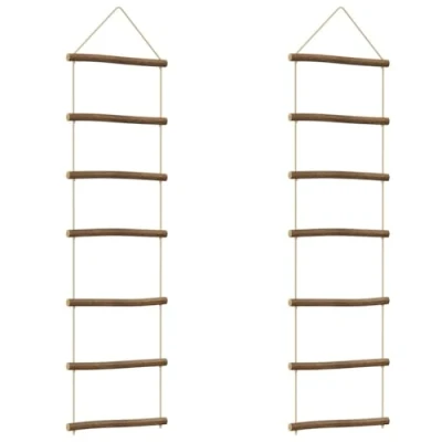 vidaXL Ladder Shaped Wooden Wall Decorations 30x100 cm Rustic Natural Branch Indoor Hangings with Hemp Ropes