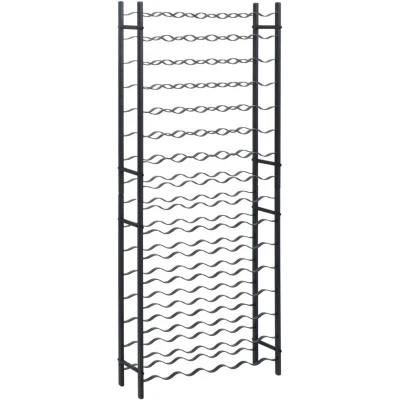 General description This wine rack can be used to store and display your wine and makes a great addition to your home decor. It holds up to 96 bottles of wine and features a simple and clean design that adds a touch of industrial charm to your living space. Made of sturdy iron, this wine holder is extremely stable and durable, making it an excellent gift for wine-loving friends and acquaintances. Technical specifications Colour: Black Material: Iron with metal spray coated finish Dimensions: 64 x 22 x 157 cm (W x D x H) Holds up to 96 bottles of wine (bottles not included) Stackable Assembly required: Yes WARNING: In order to prevent overturning, this product must be used with the wall attachment device provided. Other information
