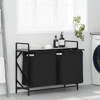 ManoManoGeneral description The laundry basket provides a spacious and convenient storage solution, featuring pull-out bags that make organizing your laundry effortless. Designed to accommodate a generous load of laundry per bag, this organizer helps categorize garments by color or fabric type, maintaining a clutter-free laundry area. It can also be used for storing toys and more. Technical specifications Frame color: Black Shelf color: Grey sonoma Laundry bag color: Black Frame material: Steel Shelf material: Engineered wood Laundry bag material: Fabric (100% Polyester) Overall dimensions: 97 x 33 x 77 cm (W x D x H) Laundry bag dimensions (each): 43.5 x 29.5 x 52.5 cm (W x D x H) Total max. weight capacity: 40 kg Max. weight capacity per shelf: 20 kg Max. weight capacity per laundry bag: 5 kg Each laundry bag includes a bottom panel for stability Assembly required: Yes Delivery contains: 2 x Laundry bag, 2 x Bottom panel, 1 x Shelf, Laundry basket frame, Assembly accessories Installation To
