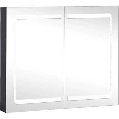 General description Introduce an aesthetically pleasing element into your bathroom with this LED Bathroom Mirror Cabinet. This vanity mirror cabinet adds a touch of contemporary style and soft illuminating light to any room. Made of quality MDF board with a melamine finish, it ensures long-term use. The energy-efficient LED strip allows you to see yourself in the truest light for makeup application, grooming, and skincare, illuminating your room, face, and smile. The cabinet features two doors that reveal three shelves inside, providing ample storage space for your essential toiletries and bath items. Technical specifications Colour: Anthracite Material: MDF in melamine finish, glass Dimensions: 80 x 12.2 x 68 cm (W x D x H) Cable length: 1 m Max. load capacity (total): 10 kg Max. load capacity per shelf: 5 kg Assembly required: Yes Other information The product has a USB connector, but the certified 5V USB power source is not included. Please use only certified DC 5V input, as higher