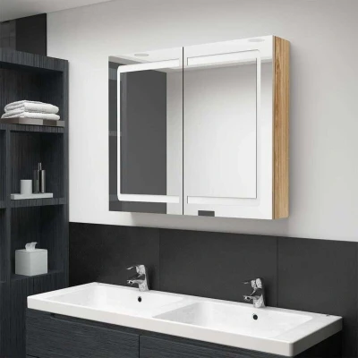 vidaXL LED Bathroom Mirror Cabinet Oak 80x12x68 cm