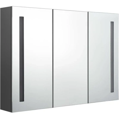 vidaXL LED Bathroom Mirror Cabinet, Wall Mounted, Ample Storage with 3 shelves, MDF Board Melamine Finish, Grey, Dimensions: 89x14x62 cm