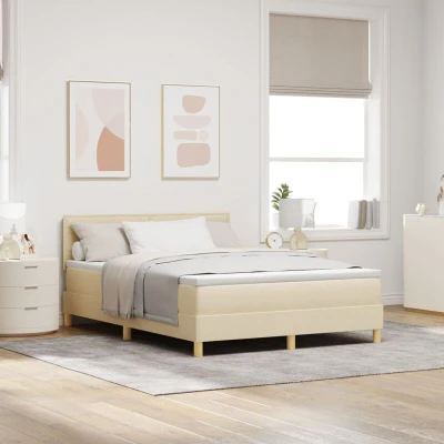 vidaXL LED Box Spring Bed with Mattress Cream 140 x 200 cm Fabric