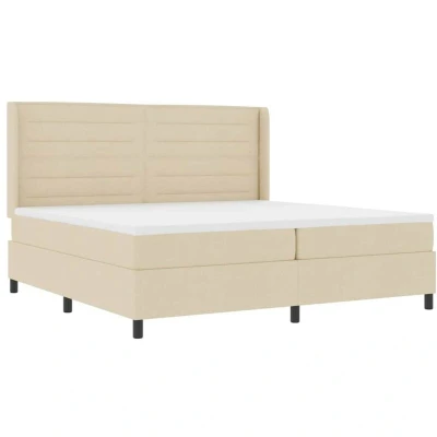 vidaXL LED Box Spring Bed with Mattress Cream 200 x cm Fabric
