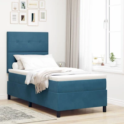vidaXL LED Box Spring Bed with Mattress Dark Blue 100 x 200 cm Fabric