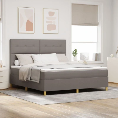 vidaXL LED Box Spring Bed with Mattress Taupe 180 x 200 cm Fabric