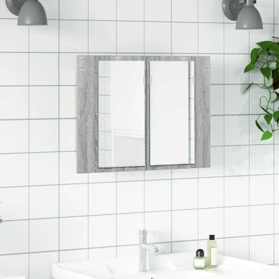 vidaXL LED Mirror Cabinet for Bathroom, Wall mounted, Grey Sonoma, 60x12x45 cm Engineered Wood, Storage Organizer with lights
