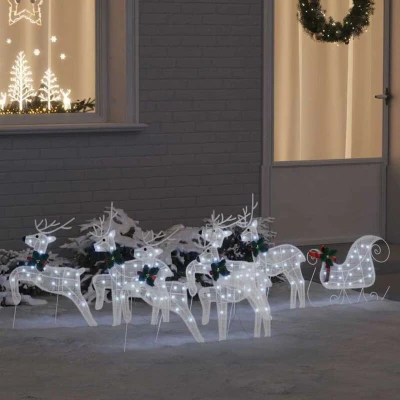 ManoManoGeneral description This Christmas Reindeer decoration is a testament to the timeless appeal of holiday traditions. Suited for both indoor and outdoor settings, it effortlessly uplifts spaces with an elegant, festive vibe. Emphasized by classic design elements, the reindeer showcases intricate artistry and combines it with modern efficiency through LED accent highlights. It's perfect for those who appreciate artistic renditions of holiday ornaments, providing a warm, inviting glow that complements the cozy, festive atmosphere of the season. Technical specifications Colour: White Material: Fabric Overall dimensions: 45 x 19 x 65 cm (L x W x H) Lights type: Decorative string lights Power source: USB (DC 5V) Durable Indoor / outdoor: Indoor and sheltered outdoor use Delivery contains: 6 x Reindeer, 1 x Sleigh Assembly required: Yes EAN: 8721288752659 SKU: 3385892 Brand: vidaXL Usage LED Accent Lighting: The Christmas Reindeer is adorned with LED lights designed to create enchanting