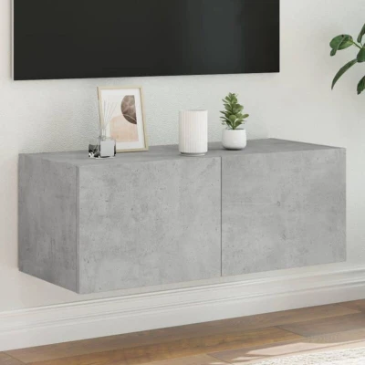 vidaXL LED Wall Cabinet Contemporary Floating TV Unit/Wall in Concrete Grey Engineered Wood Construction Ample Storage Space 80x35x31 cm