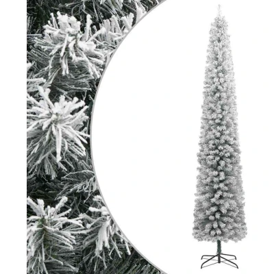 vidaXL Lifelike Slim Christmas Tree 300 cm PVC with Sturdy Metal Stand and Flocked Snow Ideal Choice for Small Spaces