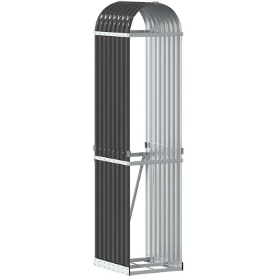 ManoManoGeneral description This log holder is an ideal solution for neatly storing your firewood. It is a must-have for anyone with a fireplace or log burner to keep firewood collected and easily accessible. Technical specifications Colour: Anthracite Material: Galvanised steel Overall dimensions: 40 x 45 x 170 cm (W x D x H) Metal sheet thickness (round): 0.32 mm Metal sheet thickness (straight): 0.23 mm With 1 pcs hook Assembly required: Yes Usage This fireplace log store is constructed from heavy-duty steel sheets, ensuring it is both stable and long-lasting. It is coated with a galvanisation finish to protect it from harsh weather conditions, making it an ideal choice for outdoor use. The wood storage keeps logs off the ground to improve ventilation and keep the firewood dry. This firewood rack is equipped with a hook, allowing you to secure it against the wall for enhanced stability and safety. To prevent damage from heavy snow buildup, we recommend clearing the roof regularly during