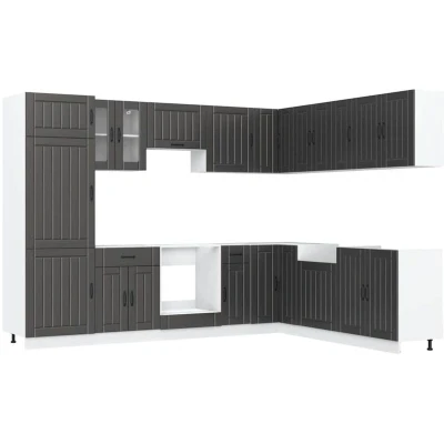 This 14-piece kitchen cabinet set, with its elegant design, optimises your kitchen space and provides ample storage space for your personal belongings! Stable and durable material: Engineered wood is a durable and stable material with a smooth surface that is resistant to moisture, warping, and splitting, making it a reliable choice for a variety of projects.Ample storage space: The kitchen cabinet set has many compartments, and offers sufficient space to store bowls, plates, pots, and other kitchen appliances.Adjustable feet: The bottom cabinets feature adjustable feet that can be adjusted in height to suit your kitchen layout.Easy to maintain: Thanks to its smooth surface, these kitchen cabinets are easy to clean with a damp cloth and require less maintenance. Warning:This product must be secured by installing a worktop. Good to know:Screw(s) and plug(s) for inside the wall are not included. Seek and use screw(s) and plug(s) suitable for your walls. If you are uncertain, seek professional advice. Read and follow each step of the instruction carefully.The worktop, sink and faucet are not included in the delivery.