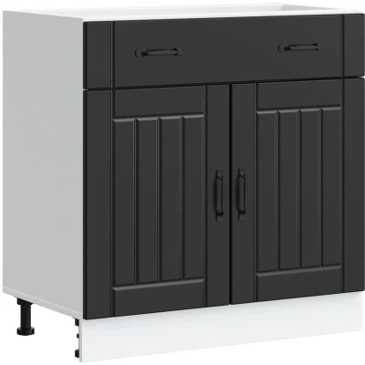 ManoManoGeneral description This kitchen base cabinet optimizes your kitchen space, providing ample storage for your personal belongings. The sink base cabinet offers sufficient space to store bowls, plates, pots, and other kitchen appliances, while practical doors help maintain a clean and organized space by concealing kitchen appliances and clutter. Technical specifications Colour: Black Material: Engineered wood Overall dimensions: 80 x 46 x 81.5 cm (W x D x H) Drawer dimensions: 80 x 46 x 16 cm (W x D x H) Cabinet dimensions: 80 x 46 x 54 cm (W x D x H) Maximum weight capacity: 70 kg Weight capacity per layer: 20 kg Range name: Lucca With adjustable feet The worktop is not included in the delivery Assembly required: Yes Installation To prevent tipping, this product must be used with the provided wall attachment device. Screw(s) and plug(s) for inside the wall are not included; seek and use suitable screw(s) and plug(s) for your walls. If uncertain, seek professional advice. Read and
