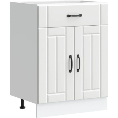 ManoManoGeneral description This kitchen base cabinet optimizes your kitchen space, providing ample storage for your personal belongings. The sink base cabinet offers sufficient space to store bowls, plates, pots, and other kitchen appliances. The practical doors help maintain a clean and organized space by concealing kitchen appliances and clutter. Technical specifications Colour: White Material: Engineered wood Overall dimensions: 60 x 46 x 81.5 cm (W x D x H) Drawer dimensions: 60 x 46 x 16 cm (W x D x H) Cabinet dimensions: 60 x 46 x 54 cm (W x D x H) Maximum weight capacity: 70 kg Weight capacity per layer: 20 kg Range name: Lucca With adjustable feet The worktop is not included in the delivery Assembly required: Yes Installation To prevent tipping, this product must be used with the provided wall attachment device. Screw(s) and plug(s) for inside the wall are not included; seek and use suitable screw(s) and plug(s) for your walls. If uncertain, seek professional advice. Read and follow