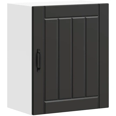 ManoManoGeneral description This kitchen wall cabinet is designed to optimize your kitchen space while adding a stylish touch to your home. Its wall-mounted design helps maximize floor space and maintain a clean area. Technical specifications Colour: Black Material: Engineered wood Overall dimensions: 50 x 31 x 60 cm (W x D x H) Dimensions of each compartment: 47 x 29.5 x 27.5 cm (W x D x H) Maximum weight capacity: 60 kg Weight capacity per layer: 25 kg Assembly required: Yes Installation Screws and plugs for wall mounting are not included; use suitable ones for your walls. If uncertain, seek professional advice. Read and follow each step of the instruction carefully. Usage The kitchen wall cabinet provides ample storage space for bowls, plates, pots, and other kitchen appliances. The practical glass door allows visibility while keeping the contents organized and concealed. Other information