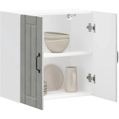 vidaXL Lucca Kitchen Wall Cabinet Concrete Grey Engineered Wood, Mounted Storage Cupboard with Glass Doors 60x31x60 cm