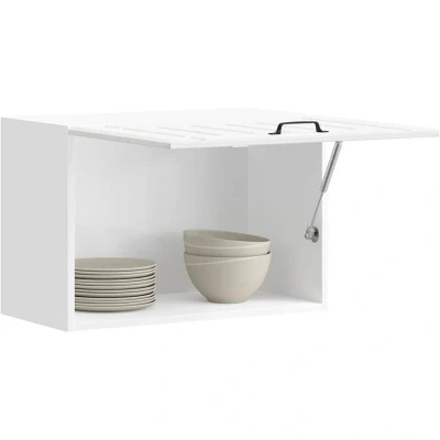 This kitchen wall cabinet is expertly designed to optimize your kitchen space while enhancing the overall decor of your home. Its sleek and modern wall-mounted design allows you to maximize floor space, providing an organized and clutter-free environment. Crafted from durable engineered wood, this cabinet combines stability with a smooth, high-gloss white surface that resists moisture, warping, and splitting. This makes it not only reliable but also visually appealing in any kitchen setting.