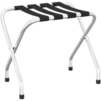 This luggage rack is made of a sturdy frame and features 4 strong nylon straps. It is perfect for hotels, inns and hostels. Sturdy frame: The metal frames ensure sturdiness and stability.Solid design: This hotel luggage stand features solid 25 mm steel pipes and 4 sturdy nylon webbing, which is ideal for placing your luggage.Foldable function: Foldable design makes the inns luggage stand easy to store without taking up much space.