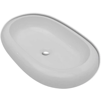 VidaXLThis oval-shaped wash basin, made of premium ceramic, will be a stylish addition to any bathroom, washroom or powder room. Its high gloss finish brings itself a modern yet elegant design. This artistic ceramic basin is more than just a practical vessel for everyday use, but it is an adornment for your living space. It will definitely suit any interior style. In addition, the basin is quite easy to clean. The drain hole is 4,5 cm in diameter. Please note that no drain is included in delivery.