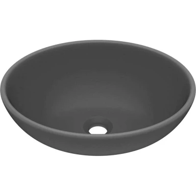 vidaXL Luxury Premium Ceramic Basin, Oval Shaped Matt Dark Grey Finish, Above Counter Installation Ideal for Bathroom and Kitchen