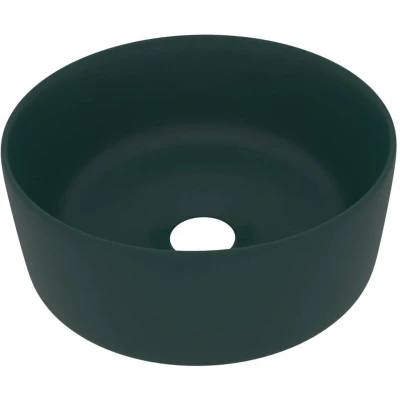 vidaXL Luxury Wash Basin Round Matt Dark Green 40x15 cm Ceramic