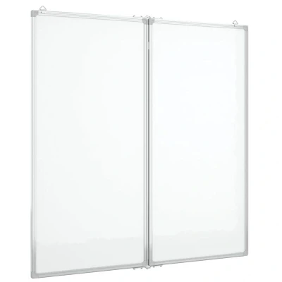 vidaXL Magnetic Whiteboard Foldable Aluminium/Plastic Frame 100x100cm Unfolded, Movable Hooks, Smooth Surface, Home/Office/School Use