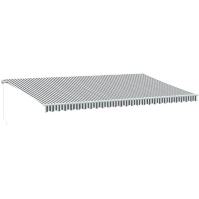 Create a nice and cool place on your patio and protect yourself from the UV rays with this retractable awning! Durable material: The awning frame is made of powder-coated aluminium, which is robust and durable. The fabric with PU surface treatment is UV resistant. It will prevent your family or guests from UV rays and dazzling sunlight. Easy to operate: The angle and height can be adjusted to meet your different needs. You can open and retract the awning smoothly via the long-hand crank. Wide applications: The extendable awning features a simple, stylish design that will blend well with your home or commercial settings. It is suitable for a variety of places, such as balconies, patios, yards, restaurants, cafes, shops, and more. Fabric colour: Anthracite and white Frame colour: White Material: Powder-coated aluminium, fabric (100% polyester) with PU coating Overall size: 600 x 350 cm (L x W) Water and dirt repellent Assembly required: Yes SKU: 3215804 Children should be supervised to